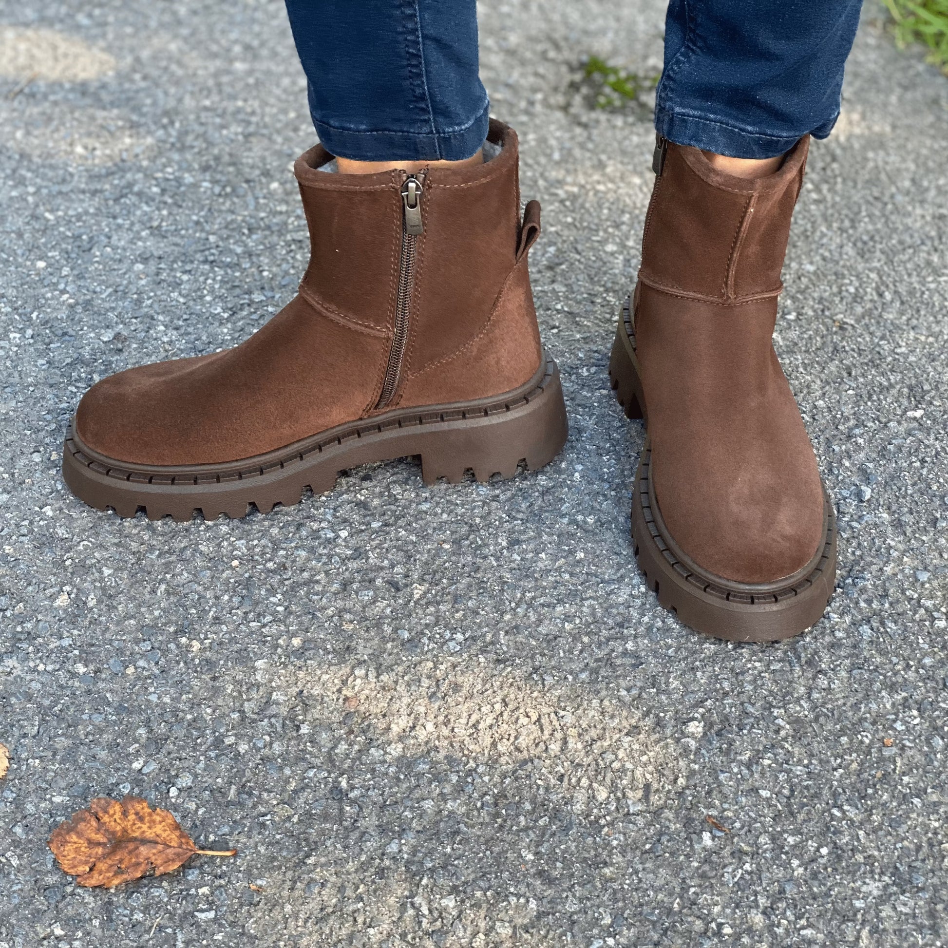 Lotta Boots er sesongens favoritt – laget i skinn med varmt fôr og robust såle. Finnes i sort, semsket brun og cognac. Perfekt til både jeans, skjørt og kjoler.