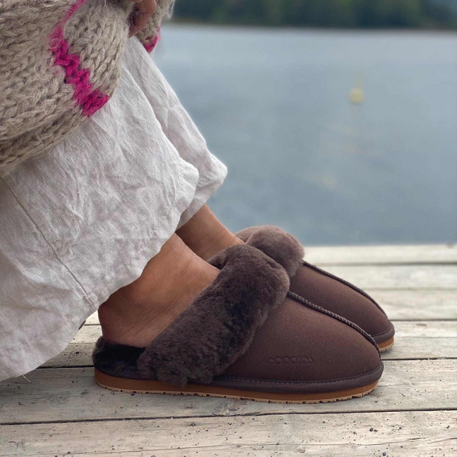 Røros tøffel har blitt en ekte favoritt hos Sapatos. Den er laget med mykt skinn på utsiden og varmt, naturlig saueskinn på innsiden som holder føttene lune hele året. Yttersålen er belagt med et lag gummi som gir godt grep og hindrer at tøffelen blir glatt på underlaget.